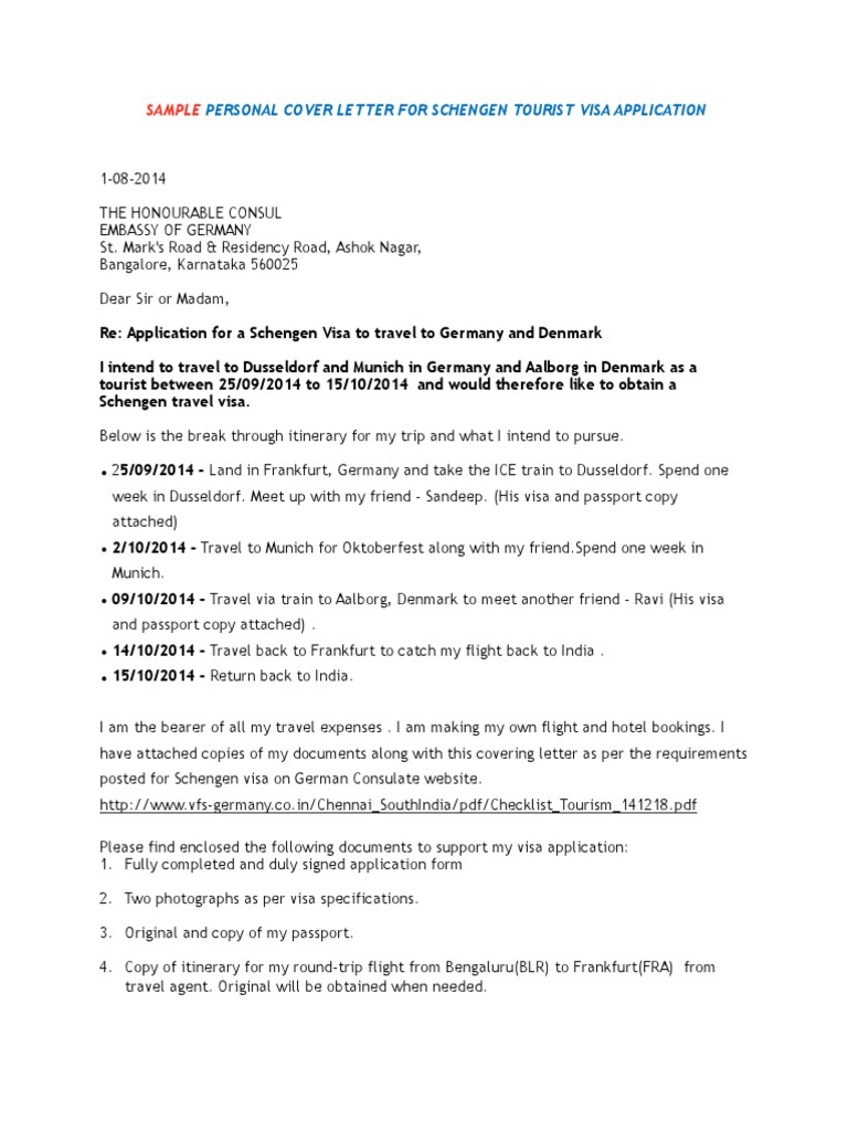 Personal Cover Letter Schengen Visa Pdf Travel Visa Passport